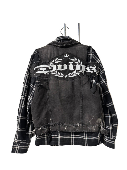 DISTRESS JEAN JACKET FLANNEL ATTACHED