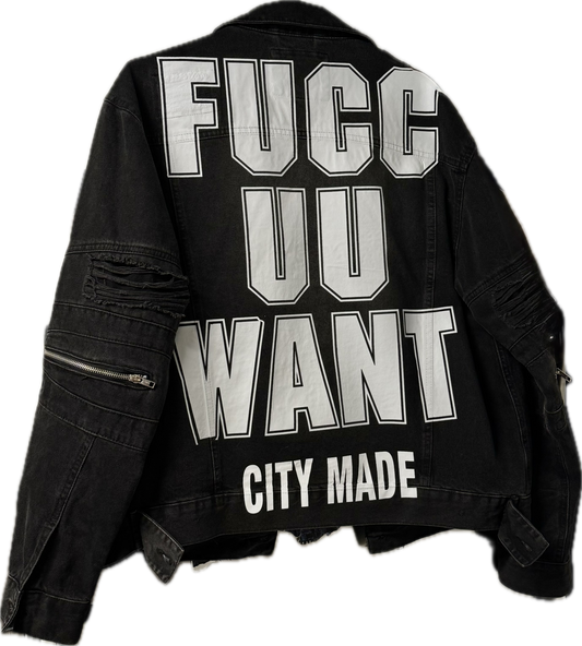 DOUBLE ZIPPER DENIM DISTRESS LOGO JACKET