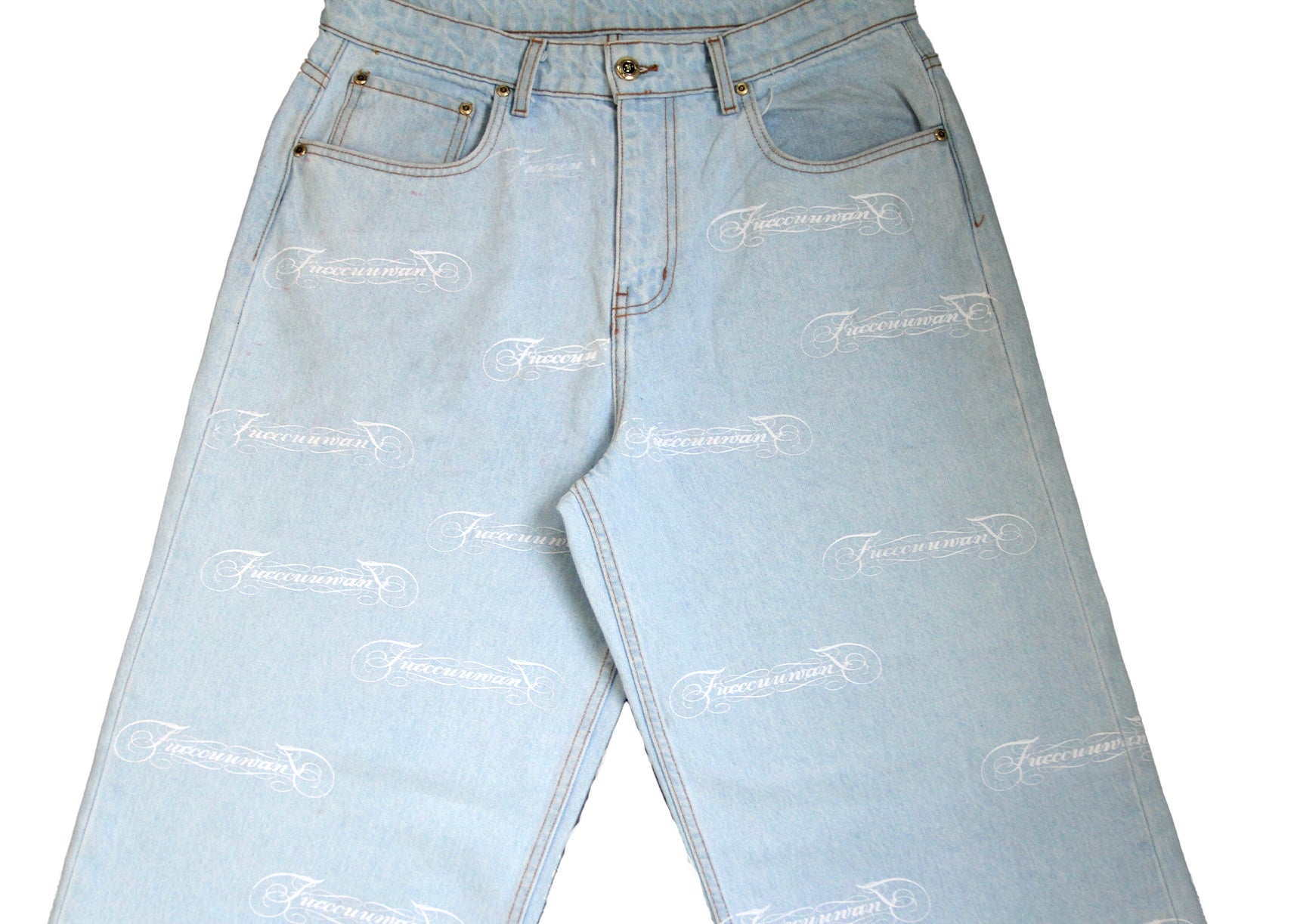 FUW SCRIPT ALL OVER PRINT BAGGY JEANS ( BLUE )